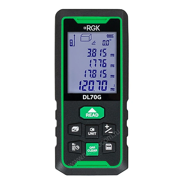 Купить Лазерный дальномер RGK DL70G - зеленый луч в Курске легко — просто позвоните по телефону: 8-800-551-11-01