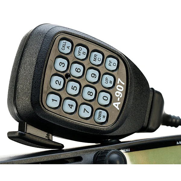 DTMF-клавиатура на тангенте позволяет не только вводить информацию, но и программировать радиостанцию без подключения к компьютеру. Для удобства пользователя на тангенте продублированы клавиши передней панели радиостанции.