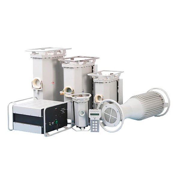 Вентиляторный блок представляет собой съемный кожух с двумя вентиляторами, который формирует воздушный поток, обтекающий блок излучателя. Аппарат может работать без вентиляторного блока, но при этом значительно возрастают перерывы между рабочими циклами.