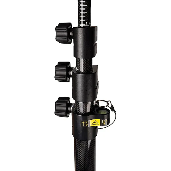 Выдвижные секции закрепляются между собой в выбранном положении с помощью надежных винтовых зажимов. Дополнительно нижний и средний элементы могут фиксироваться в выдвинутом положении с помощью штифта, который при неиспользовании помещается в гнездо возле пузырькового уровня.